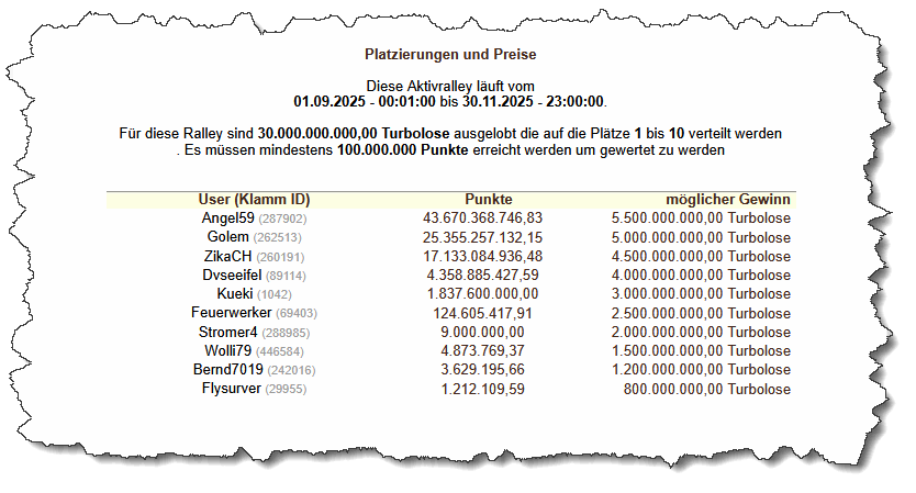 30.000.000.000,00 Turbolose ausgelobt die auf die Plätze 1 bis